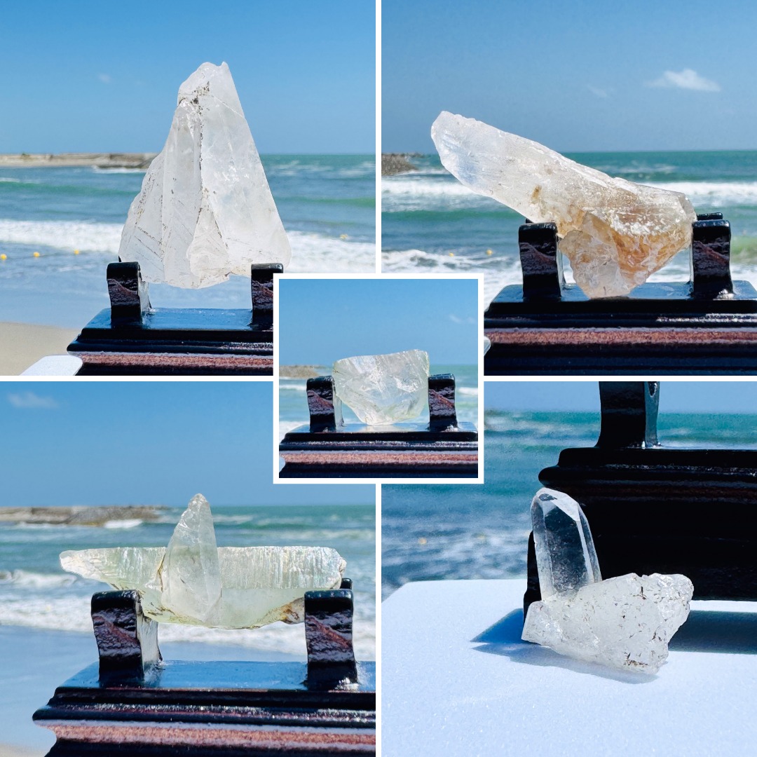今回ご用意したのは、全部で5種類。レムリアンシードや虹入りのもの、シャープな形が魅力のポイント水晶など、ひとつひとつに個性があります。どれも人工的な加工は施さず、原石のままの販売です。自然がつくり出した表情を、ぜひそのまま感じていただければと思います。