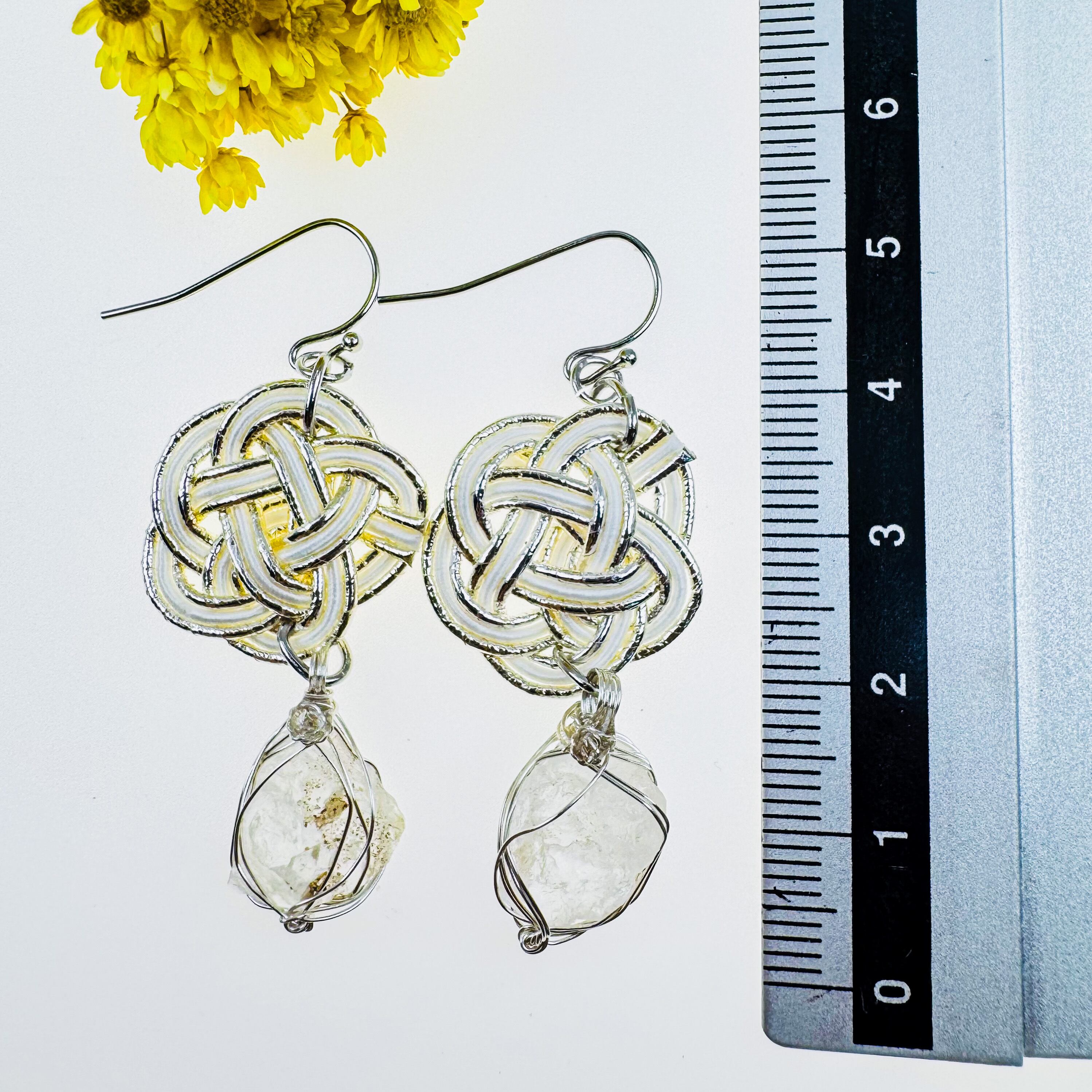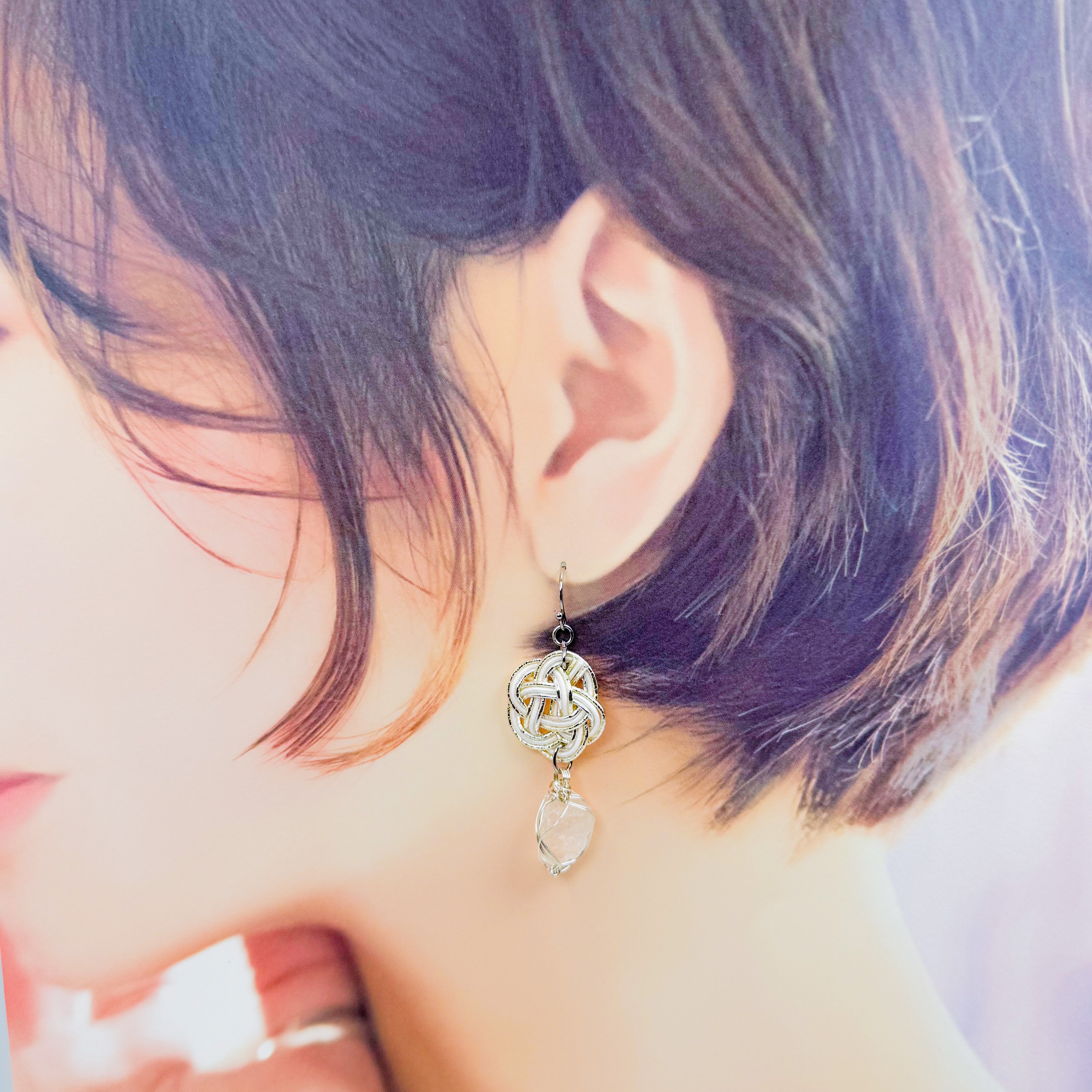 水引と虹入り高千穂水晶のピアス【白×銀】