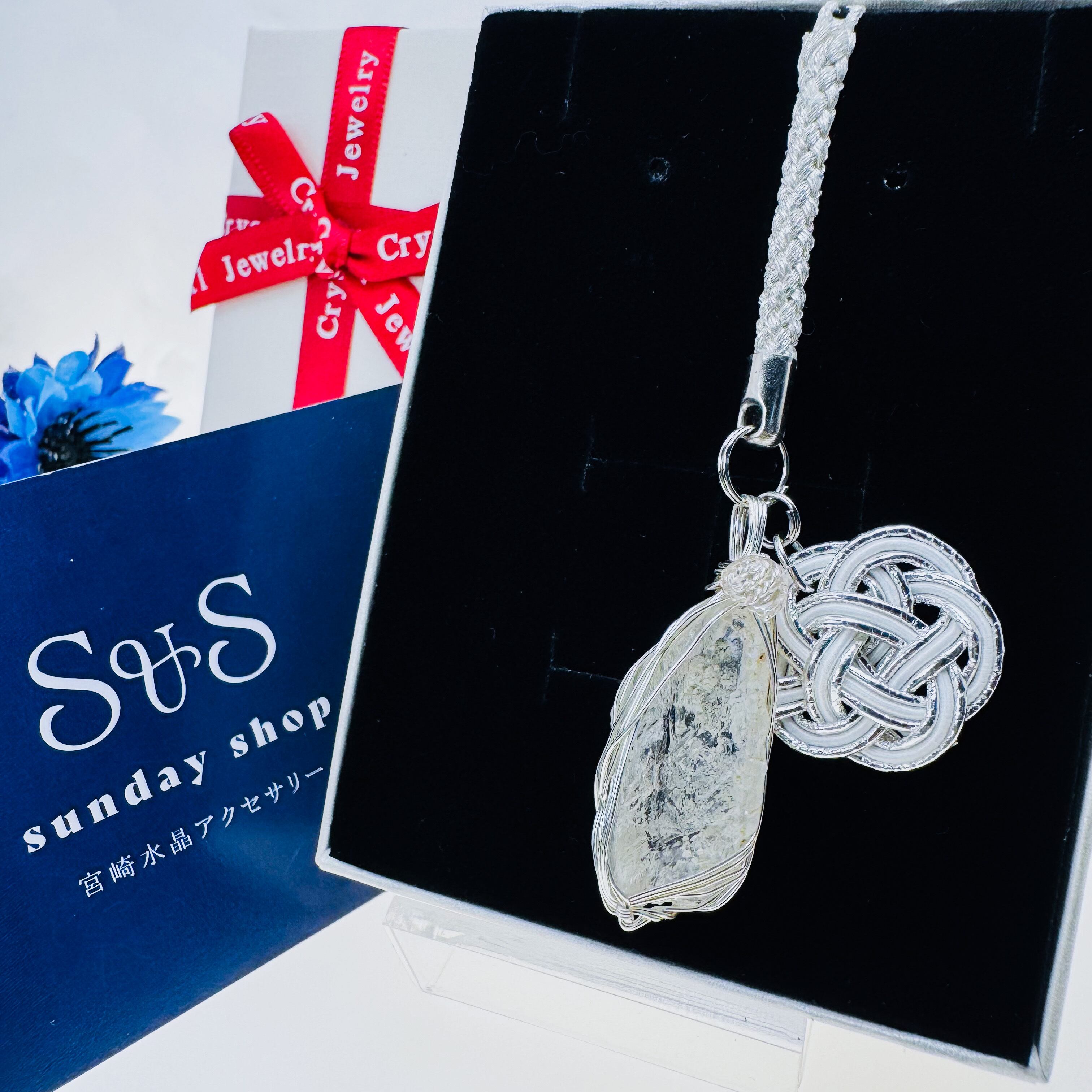 【インスタ登録1000人記念】高千穂水晶×水引のストラップ【白×銀】
