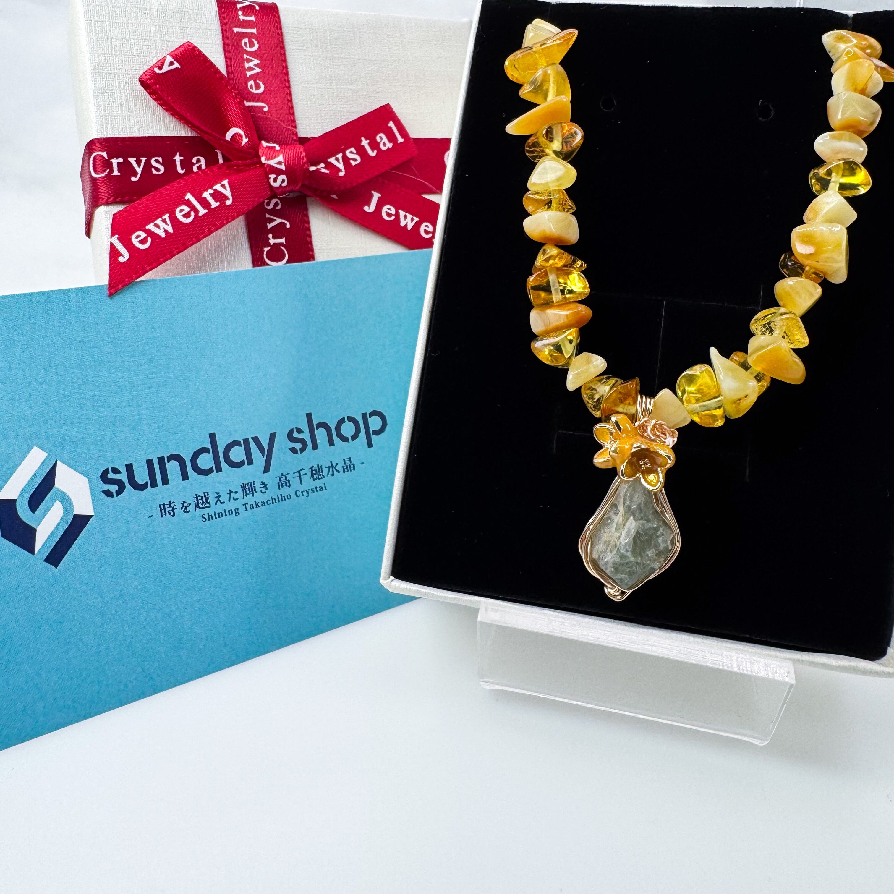 高千穂水晶のサザレブレス【天然琥珀/草入り水晶/金木犀チャーム】