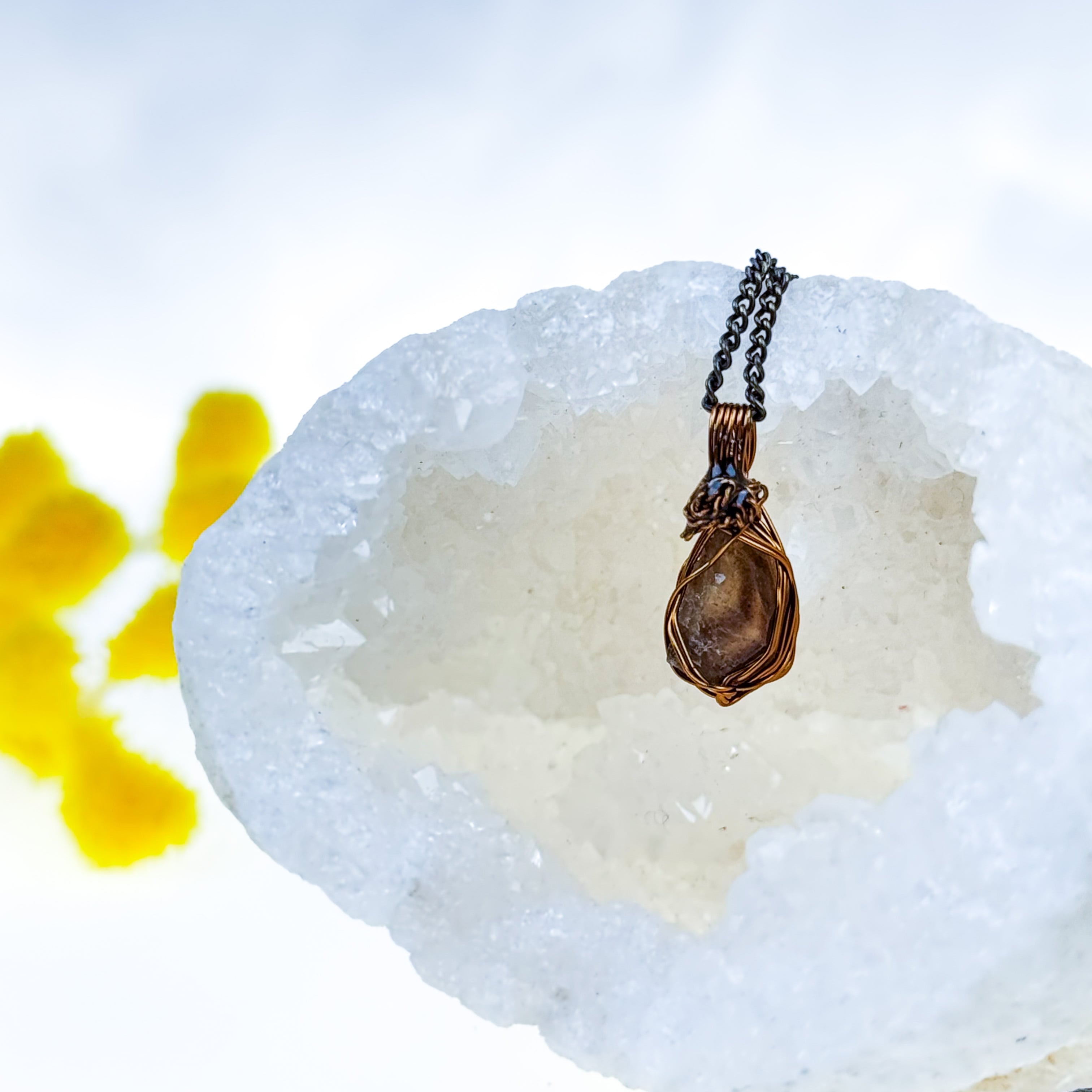 高千穂水晶のネックレス【スモーキー/金古美チェーン】