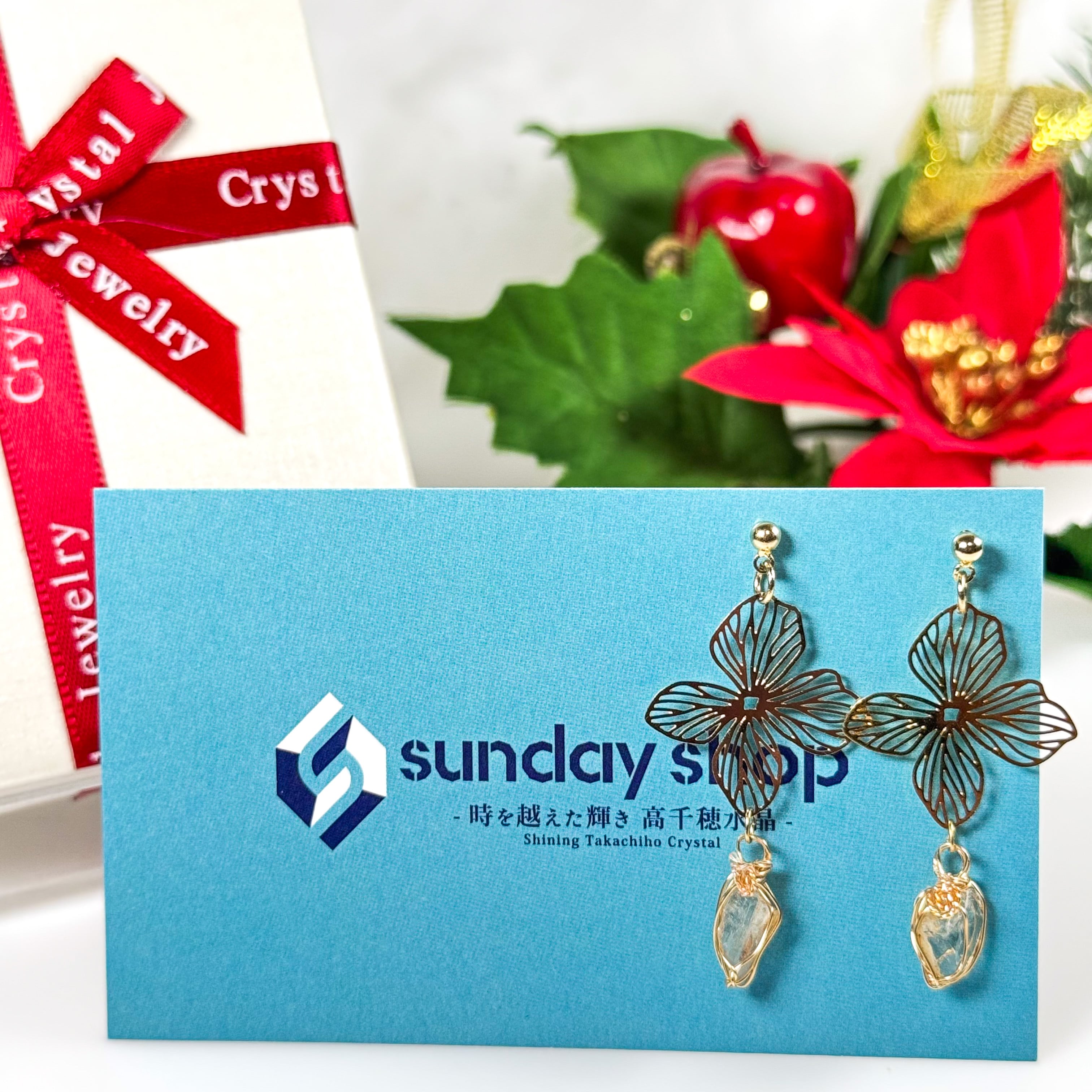 ✅高千穂水晶ピアスです!【天孫降臨の地・宮崎県高千穂町産水晶】国産宮崎水晶を使った一点物のピアスです。