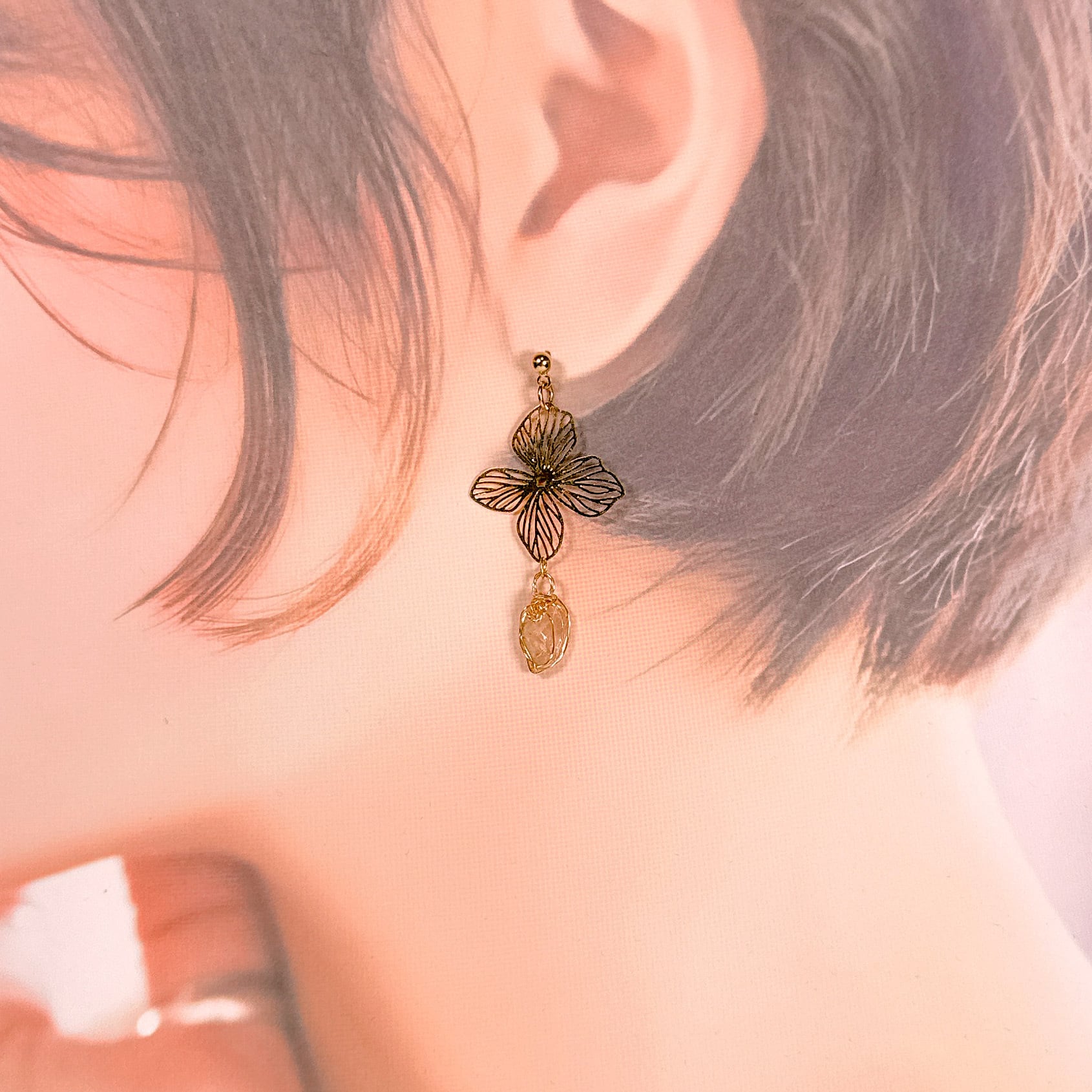 ✅大きめなフレームフラワーと透明感のある高千穂水晶が華やかさをプラスし、個性を出せるアイテムです。