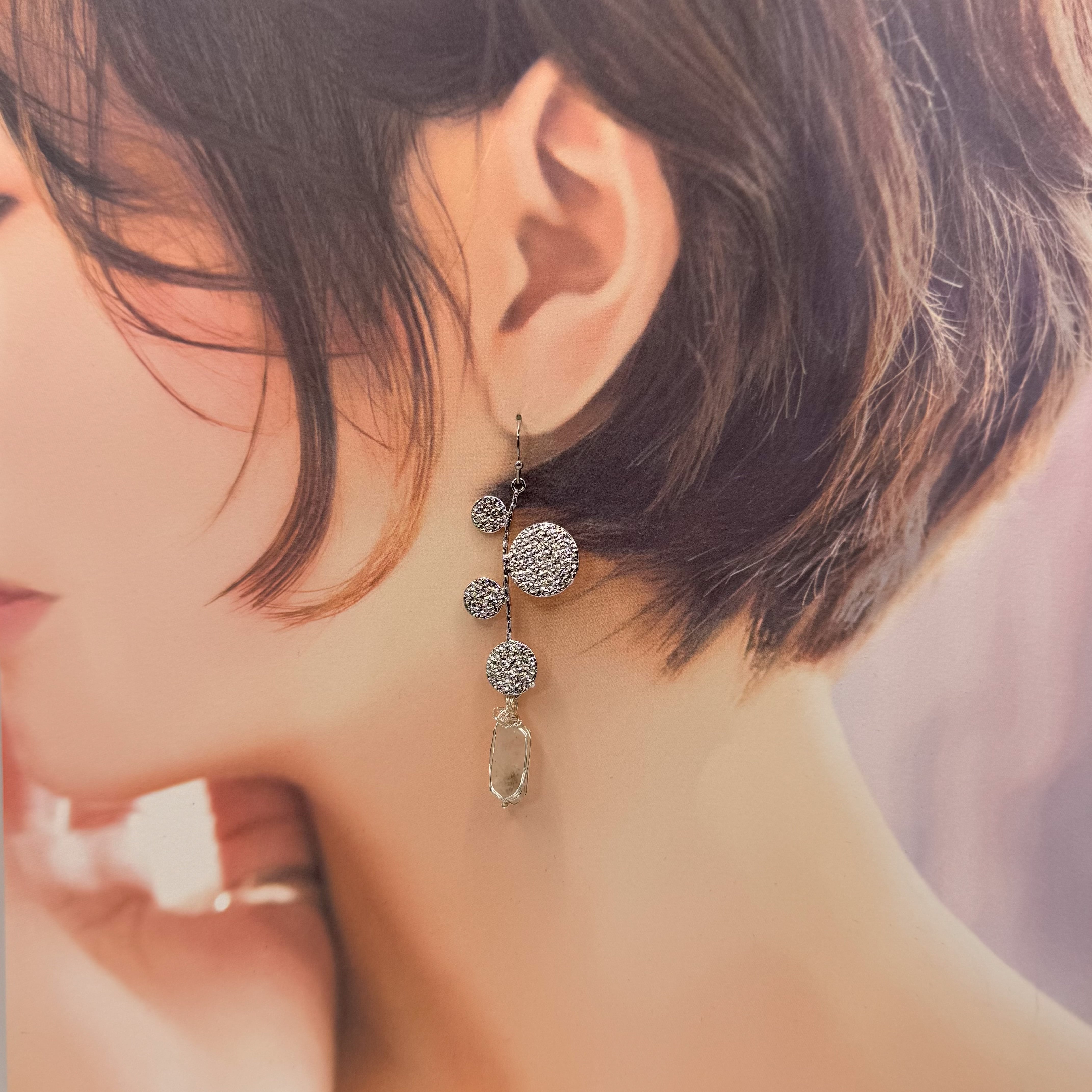 ✅大小の丸モチーフが印象的なパーツを使っています。丸いメタルパーツの凸凹感もステキです。耳元で華やかさを与えてくれます。