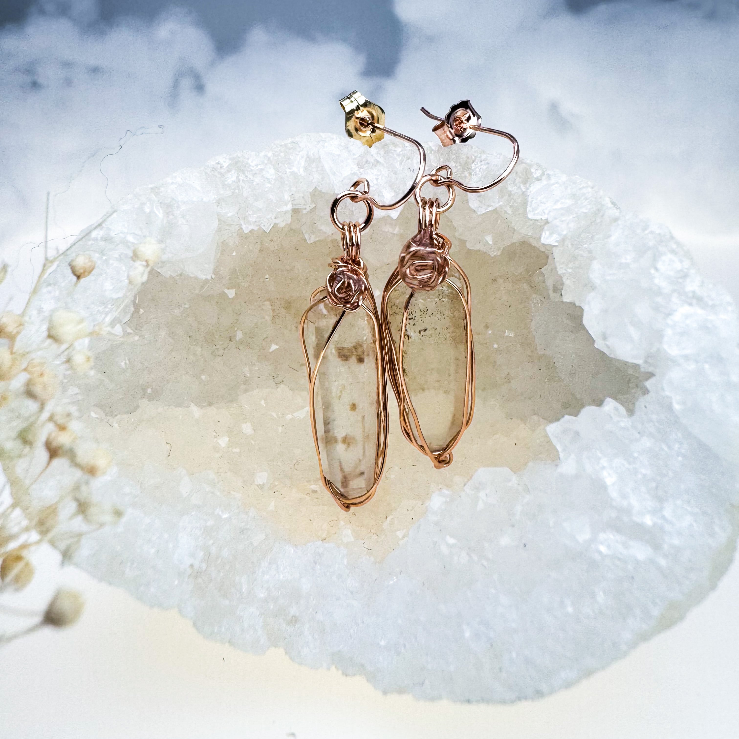 高千穂水晶の14kgfピアス(ピンクゴールド)