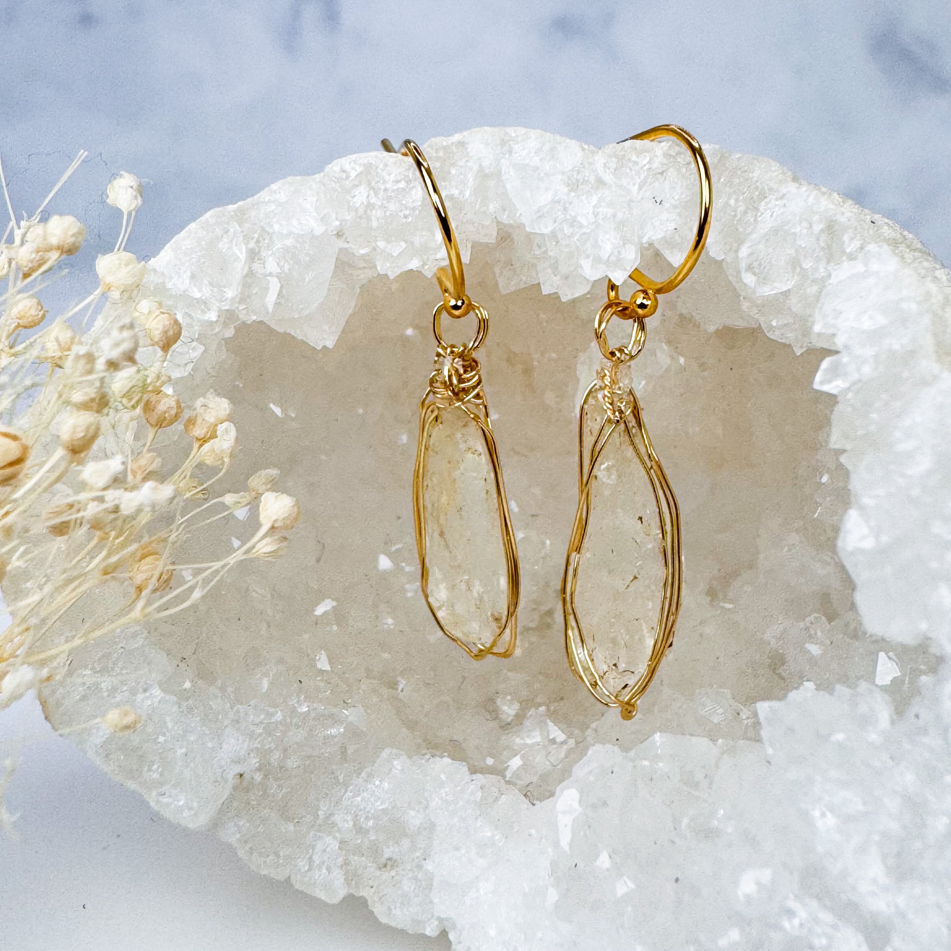 ✅日本国産宮崎県高千穂町で採れたままの水晶を使ったピアスです。虹入り水晶を使用しています。