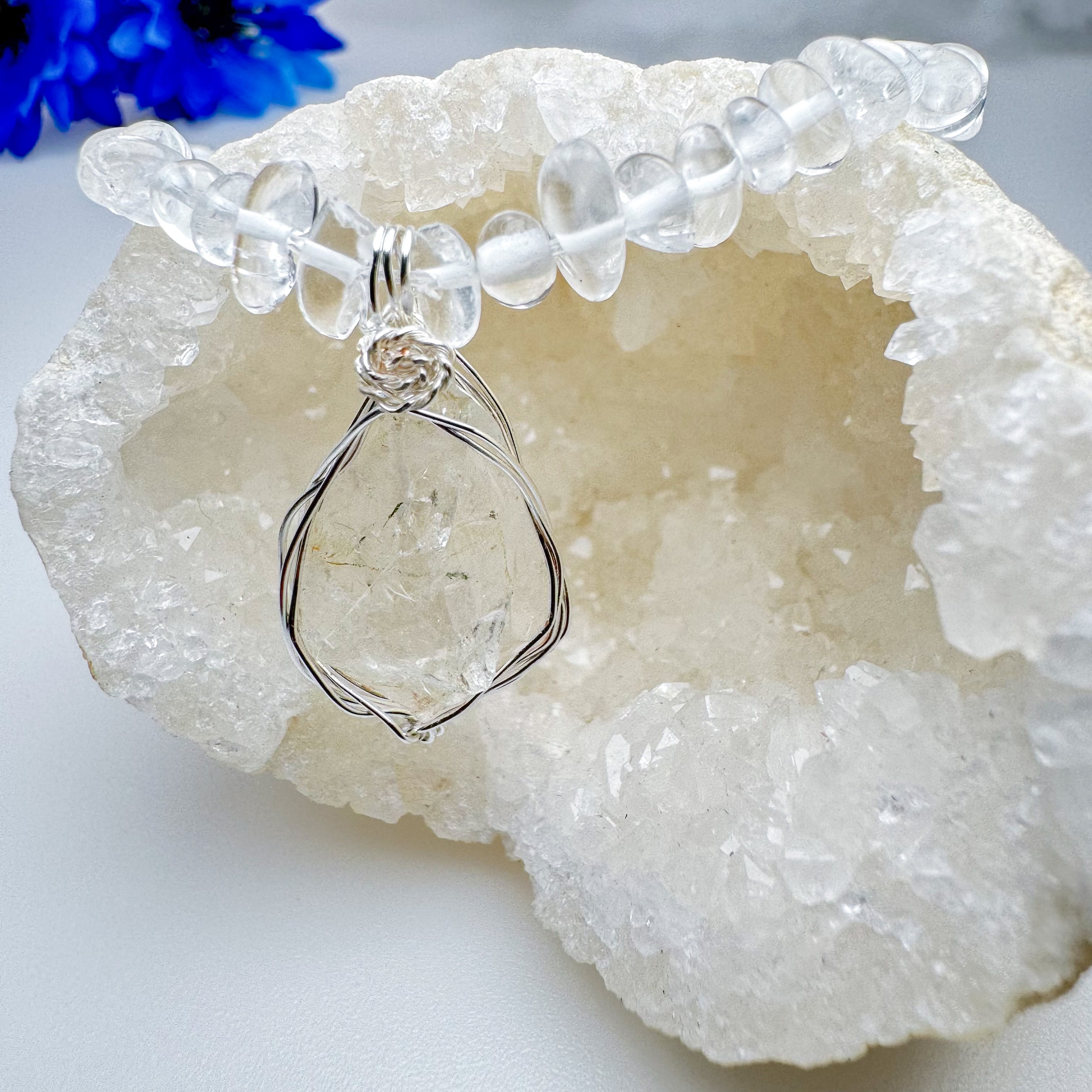 ✅日本国産宮崎県高千穂町で採れたままの水晶を使ったブレスレットです。虹入り水晶を使っています。