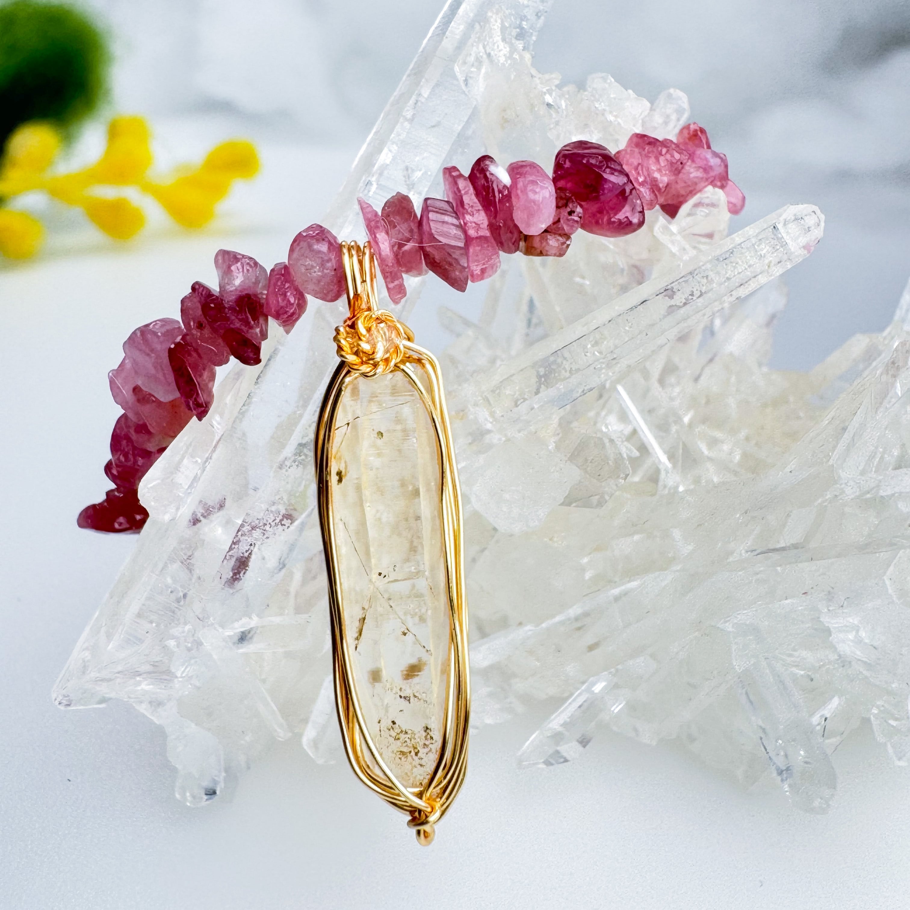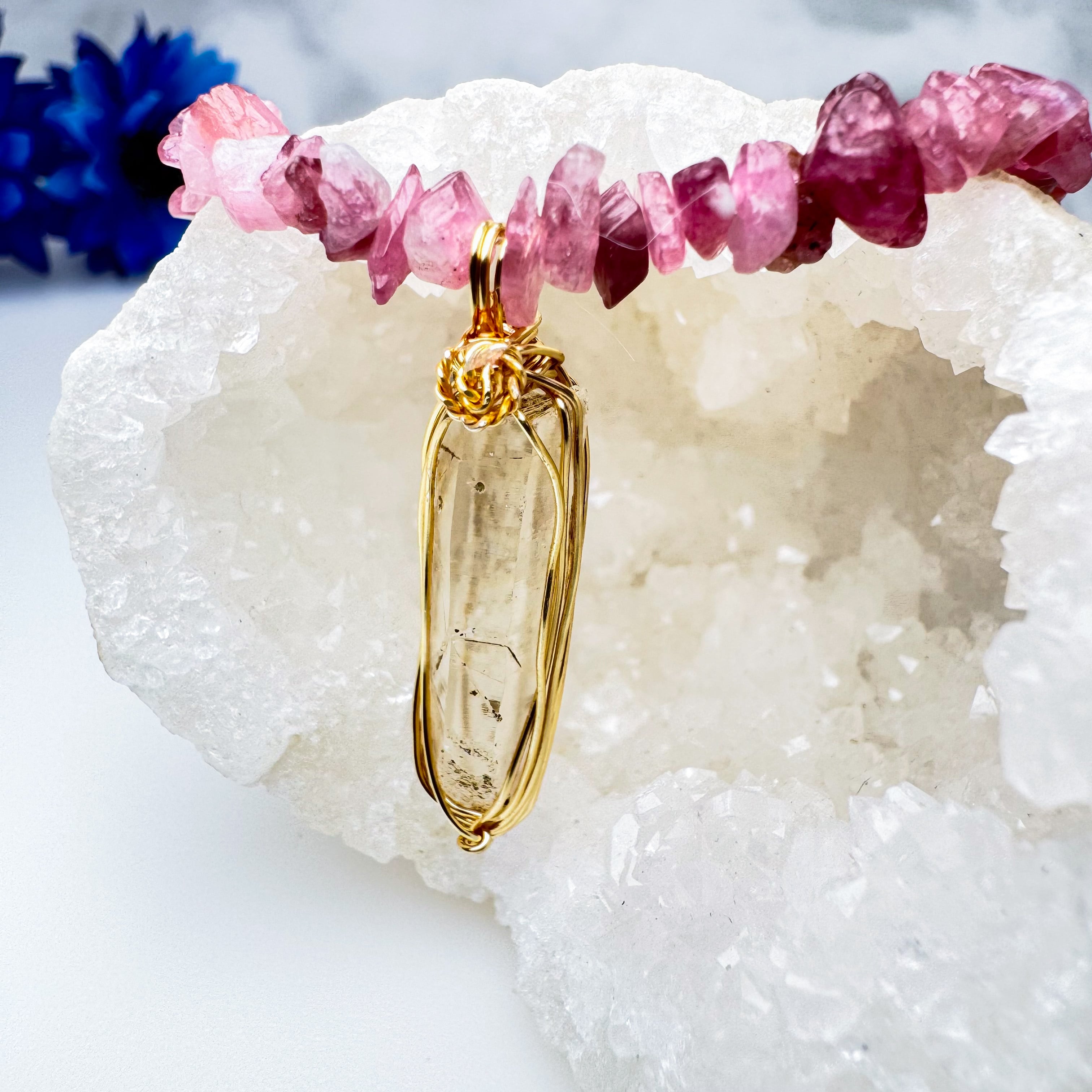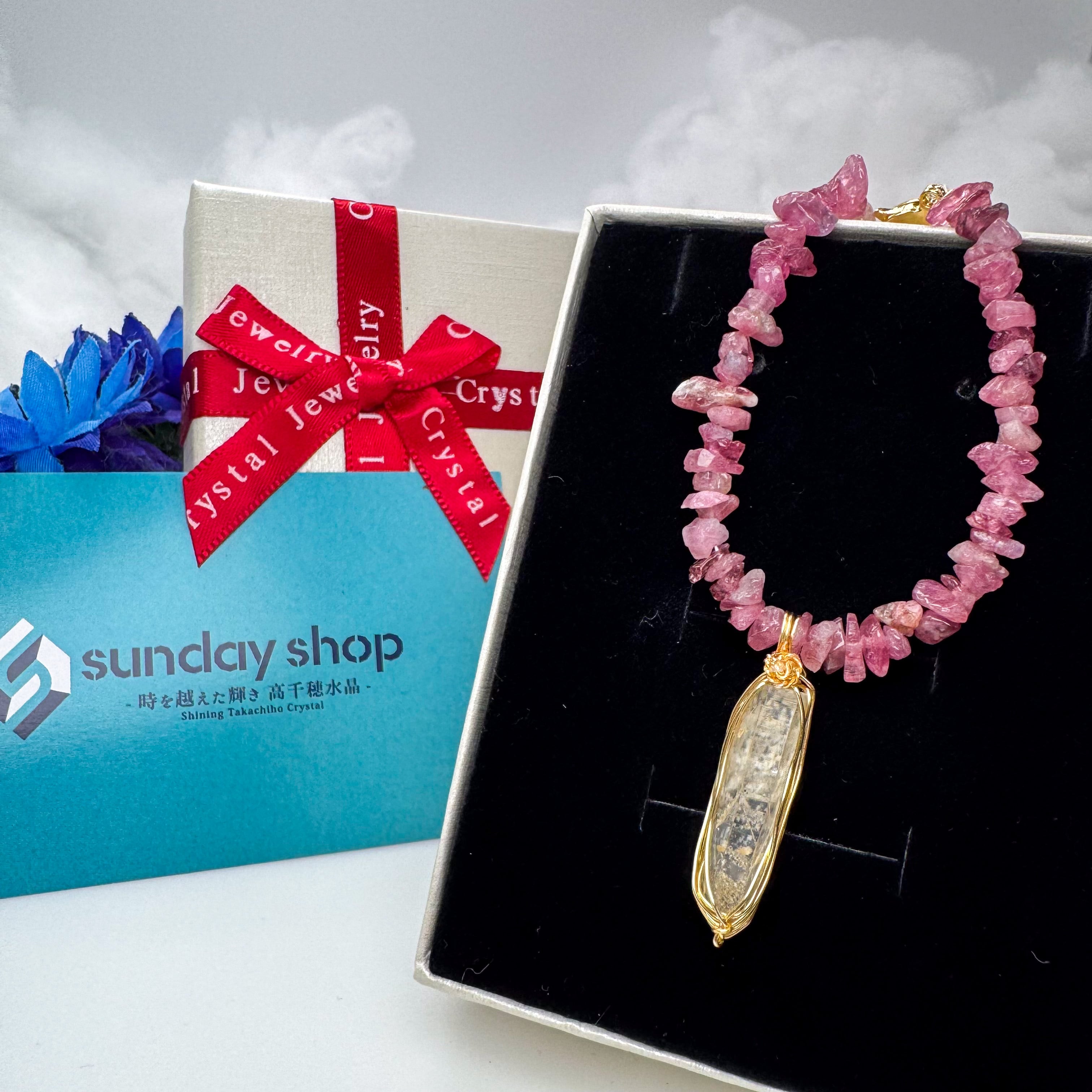 高千穂水晶のサザレブレス【ピンクトルマリン/上質水晶】