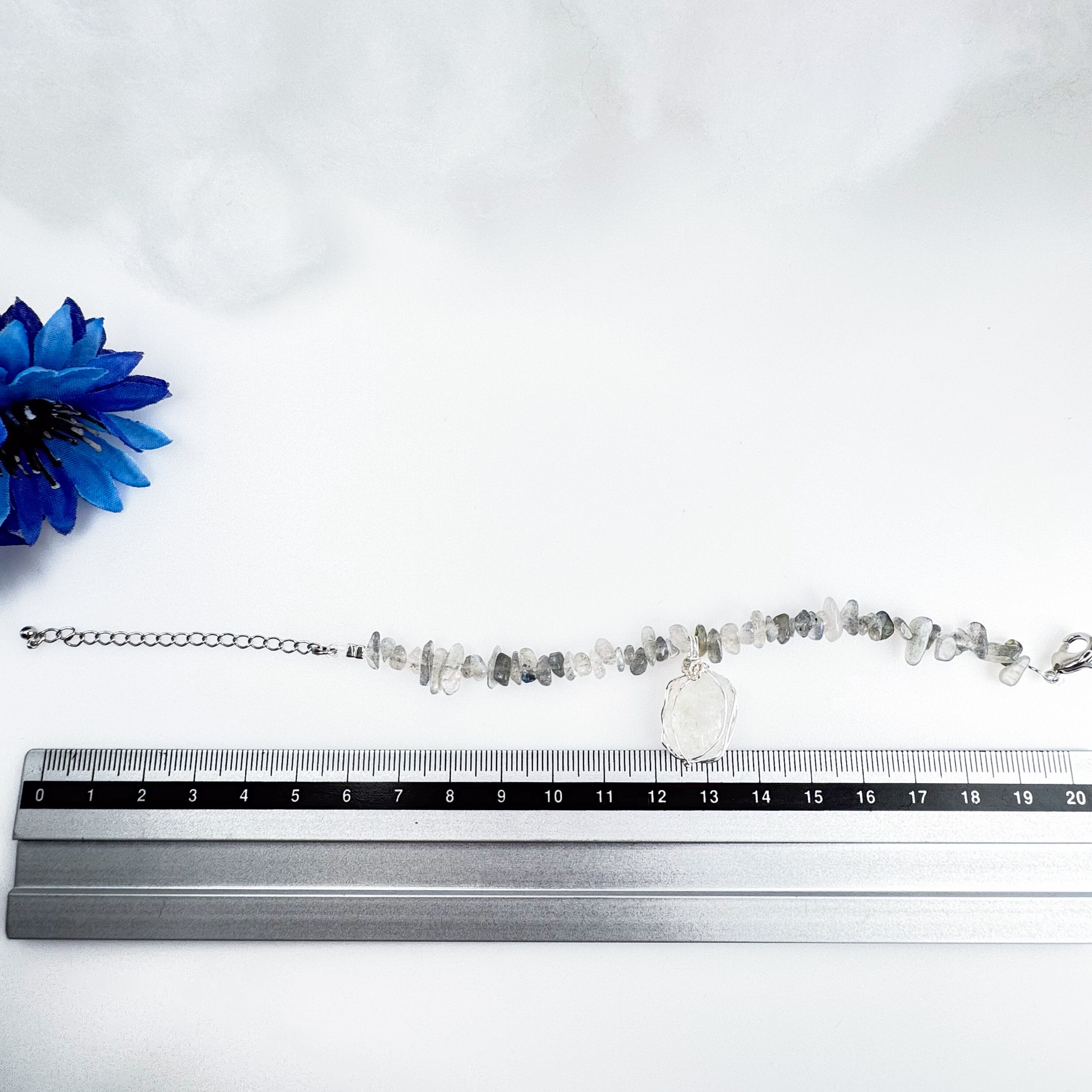 ✅ラブラドライトの天然石サザレを使っています。光の照り返しによって、オーロラのような色彩の輝きが見えます。「才能の開花」の意味を持つ石と言われています。