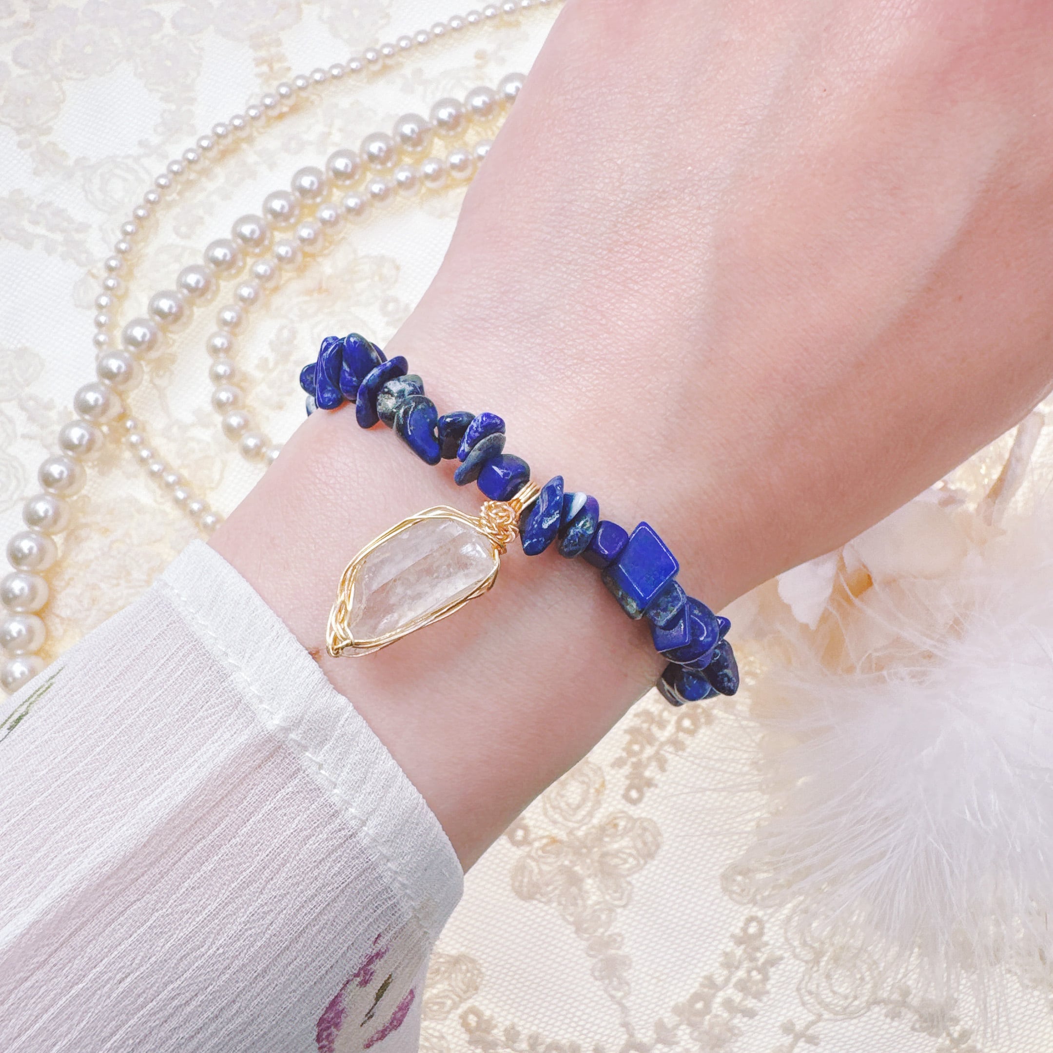 ✅ラピスラズリの天然石サザレを使っています。「幸運を呼び寄せる」石と言われています。