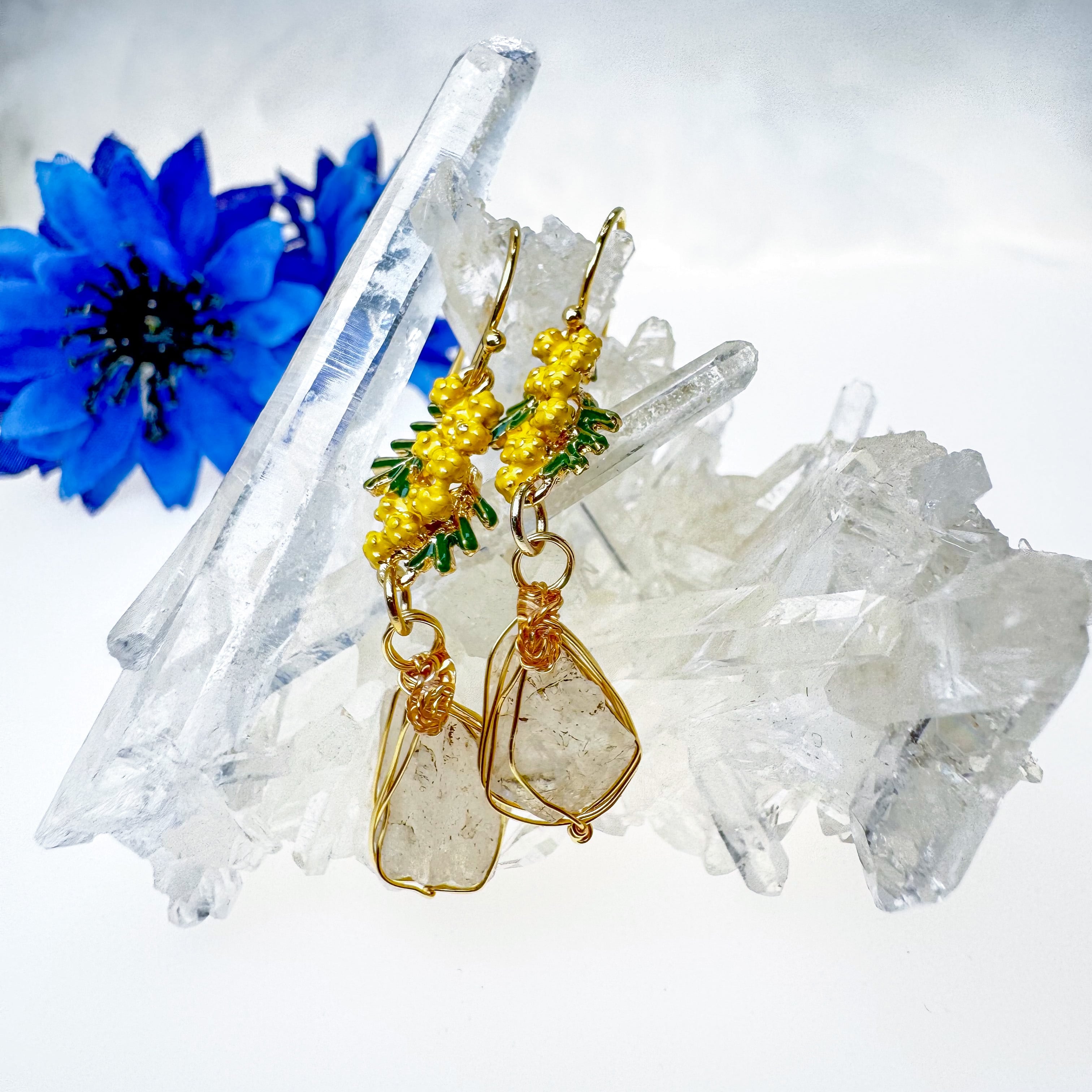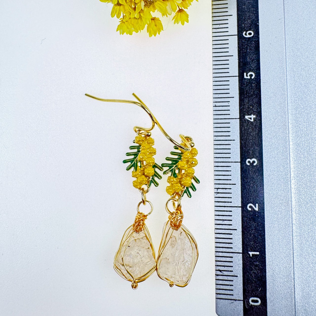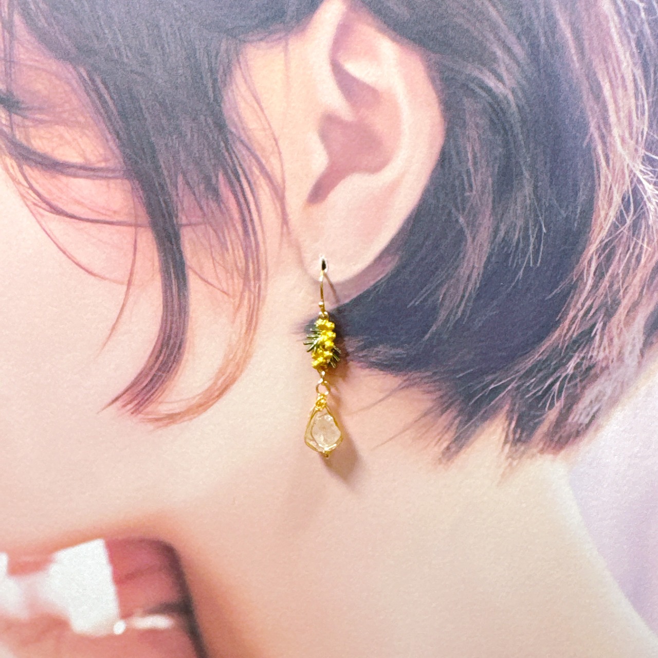 ✅キラリと輝く高千穂水晶とミモザのモチーフを組合せています。春のお出かけや特別な日に、耳元にやさしい彩りを与えてくれます。