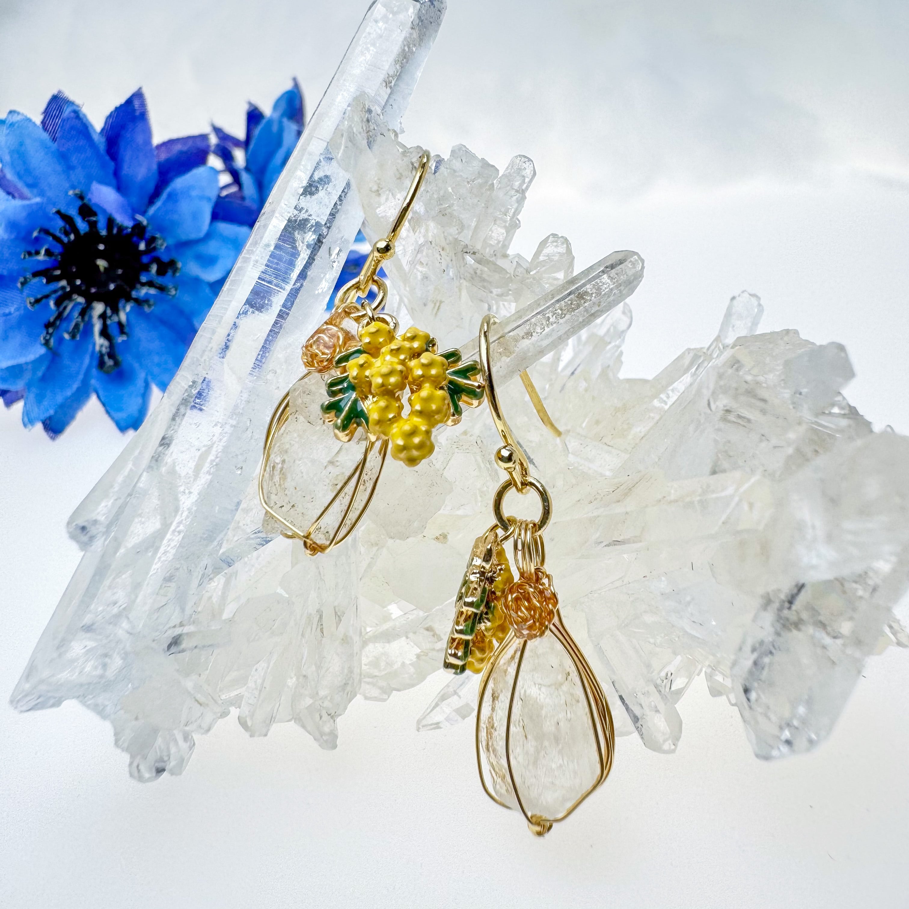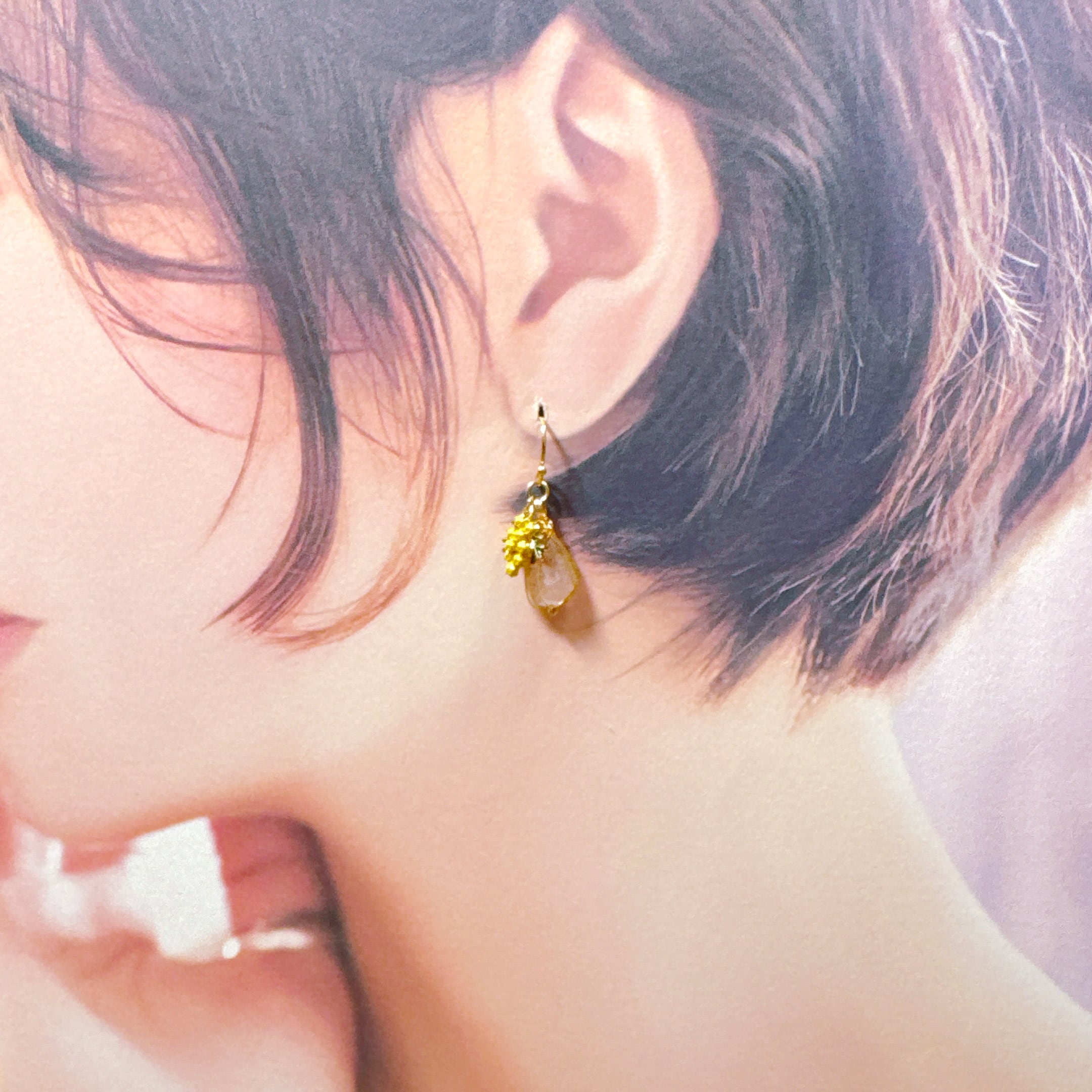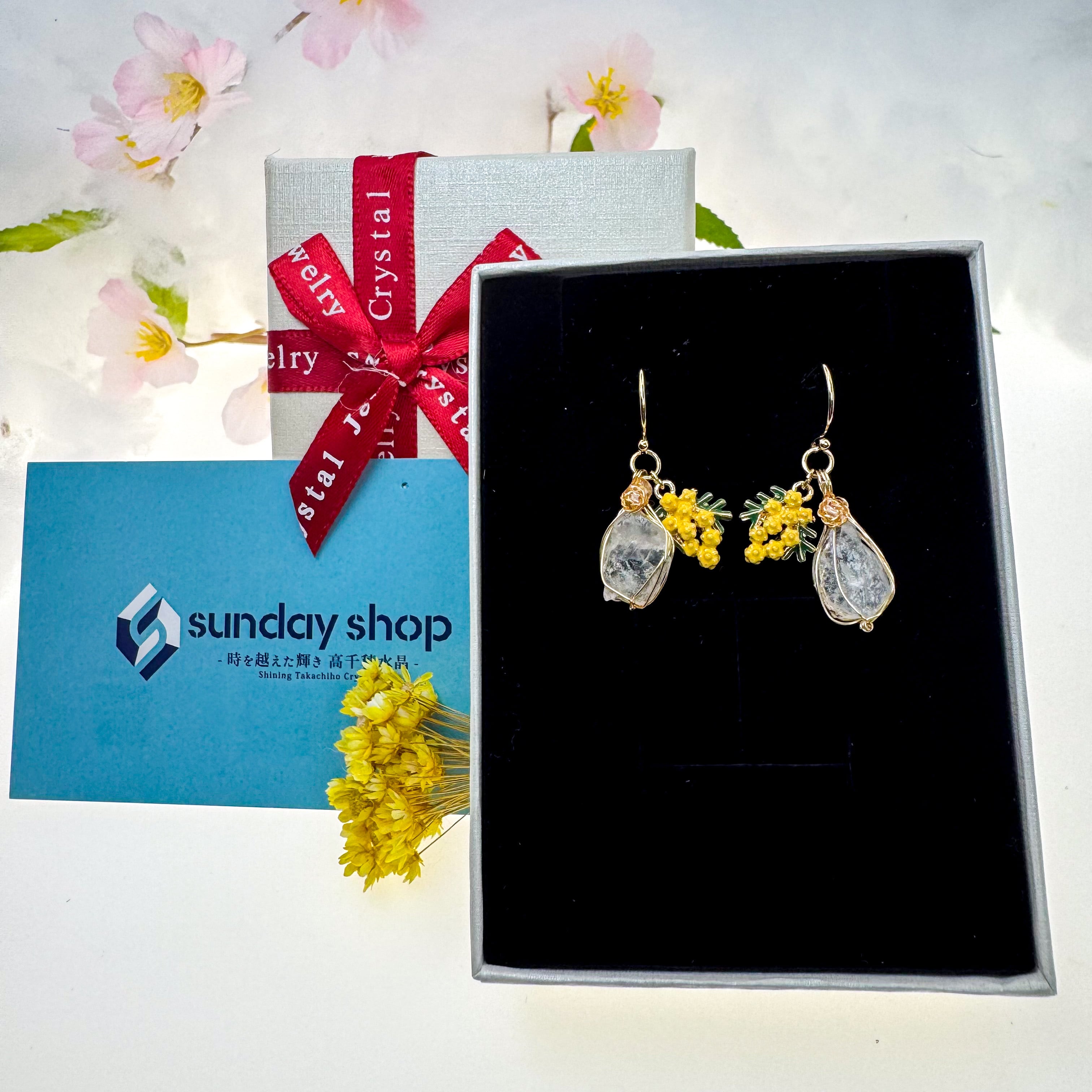✅キラリと輝く高千穂水晶とミモザのモチーフを組合せています。春のお出かけや特別な日に、耳元にやさしい彩りを与えてくれます。
