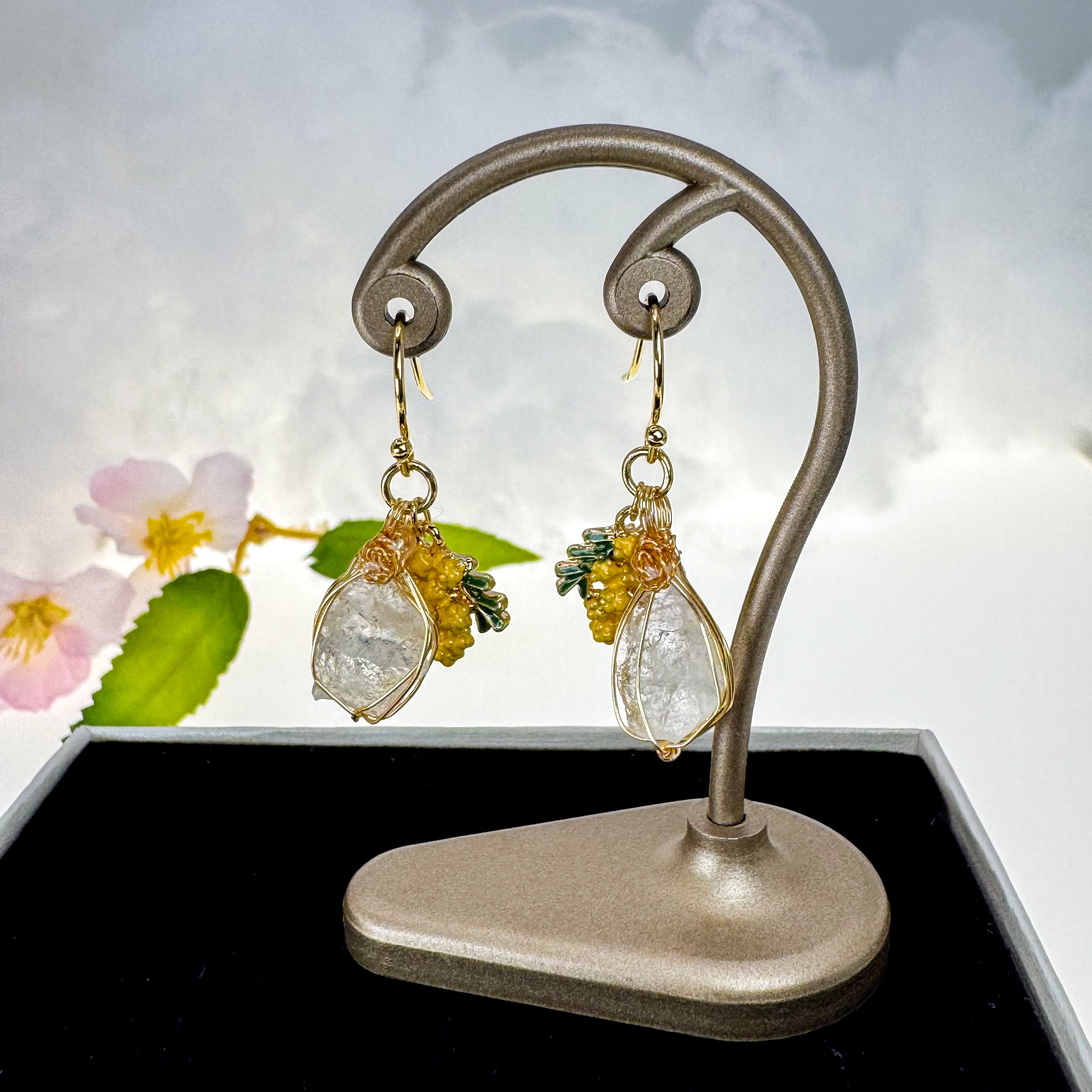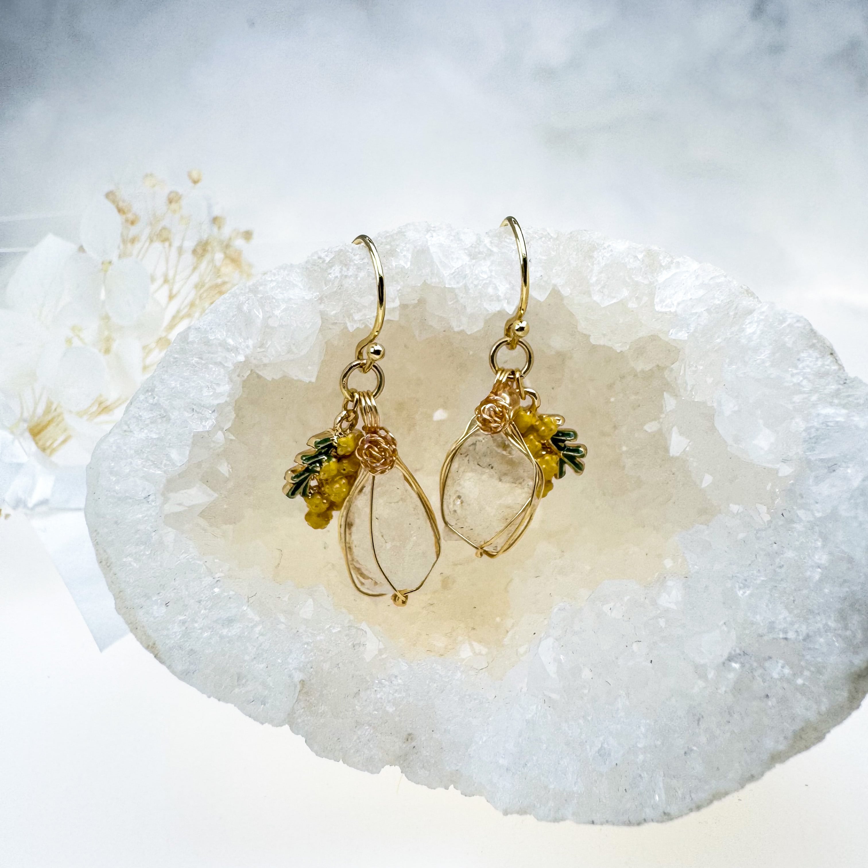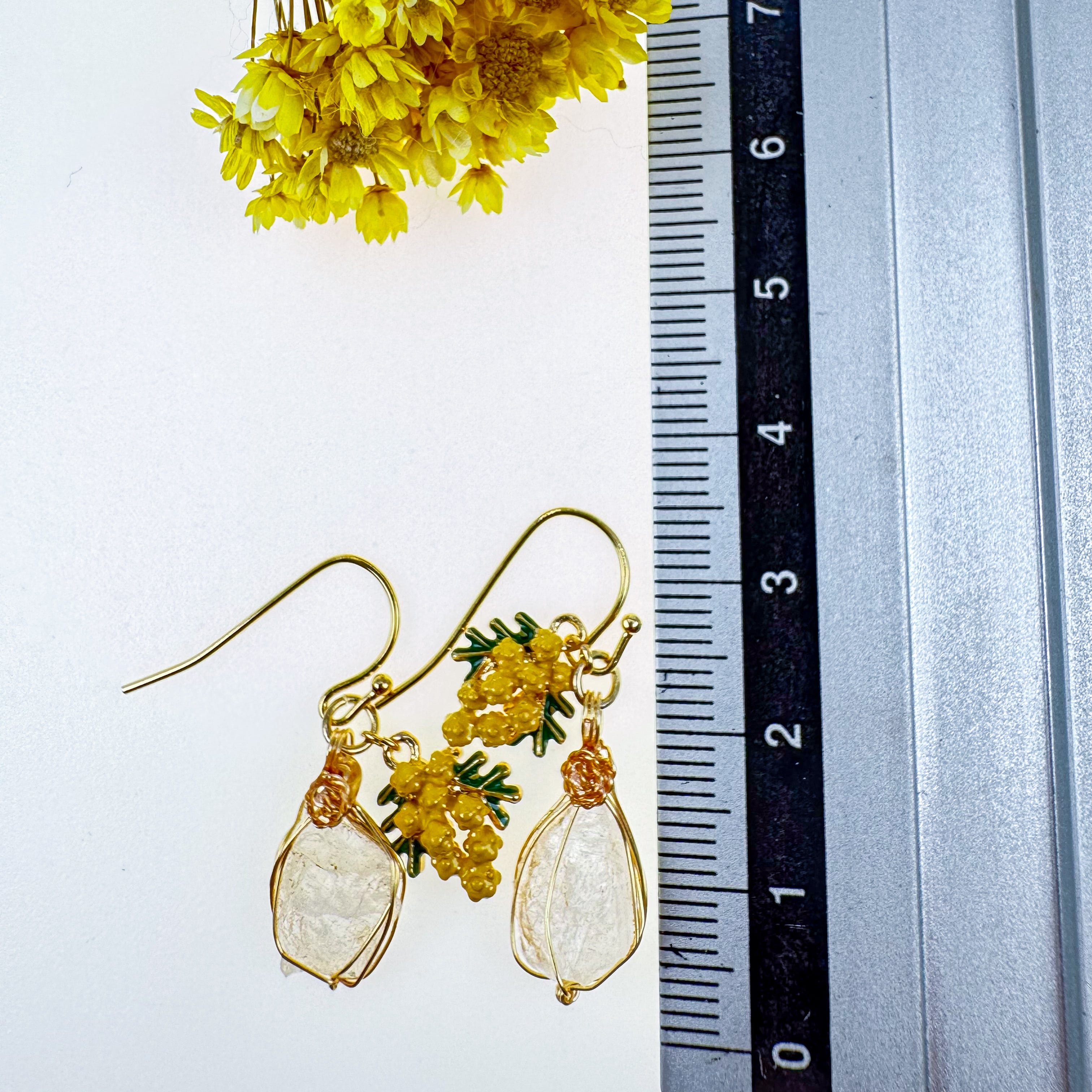 ✅キラリと輝く高千穂水晶とミモザのモチーフを組合せています。春のお出かけや特別な日に、耳元にやさしい彩りを与えてくれます。