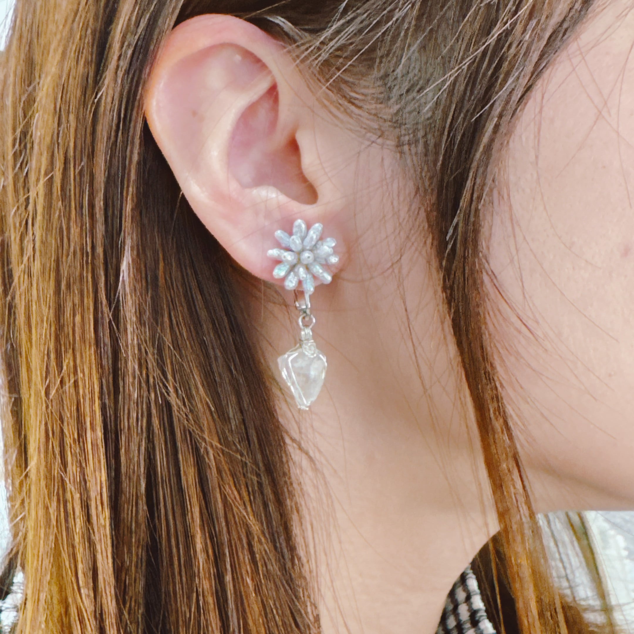 高千穂水晶のイヤリング【淡水パールフラワー】