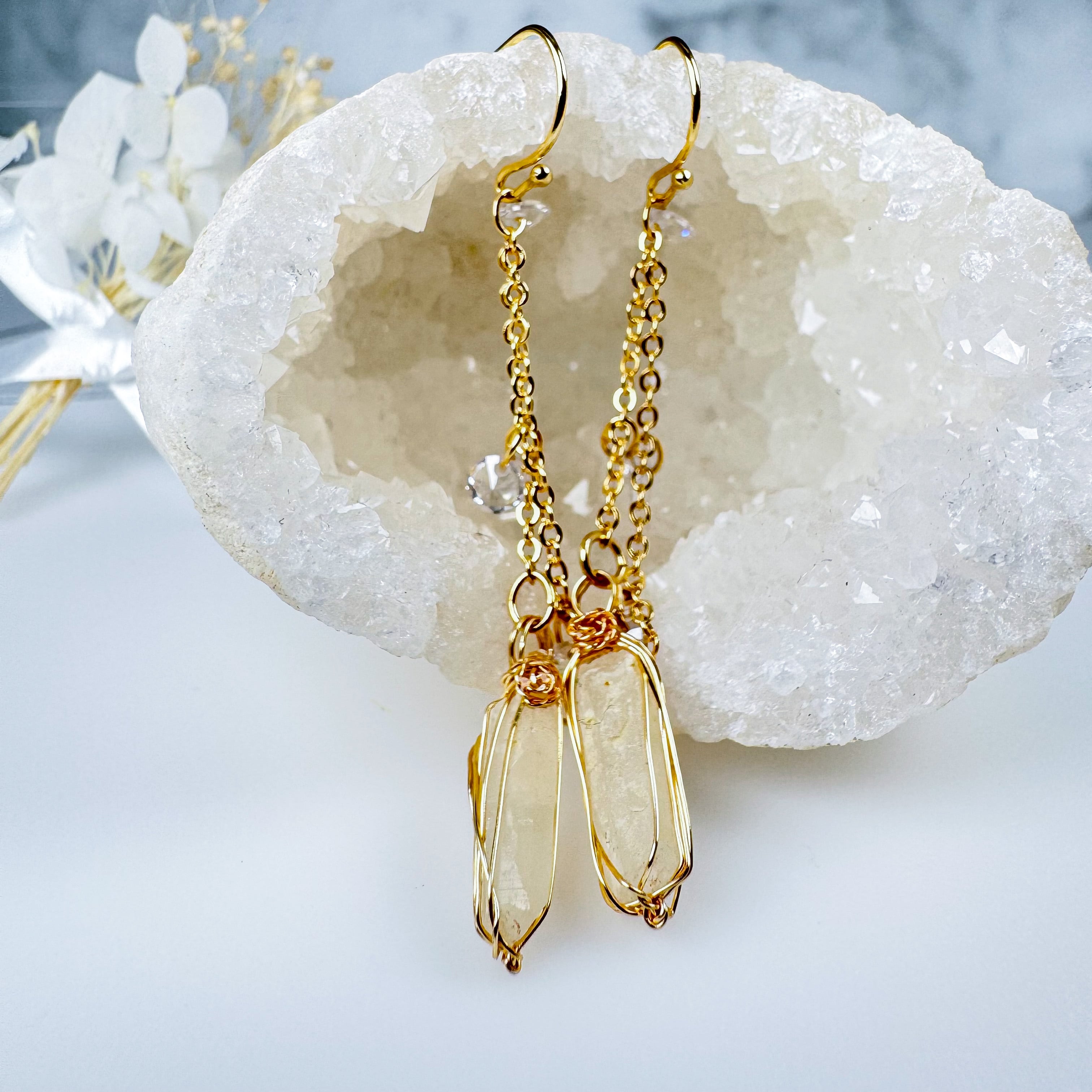 ✅国産天然水晶のなかでも珍しい高千穂水晶の原石を使用。色合いや形、内包物、クラック(ひびのように見えるもの)などに個体差があります。それぞれが持つ自然の表情としてお楽しみください。