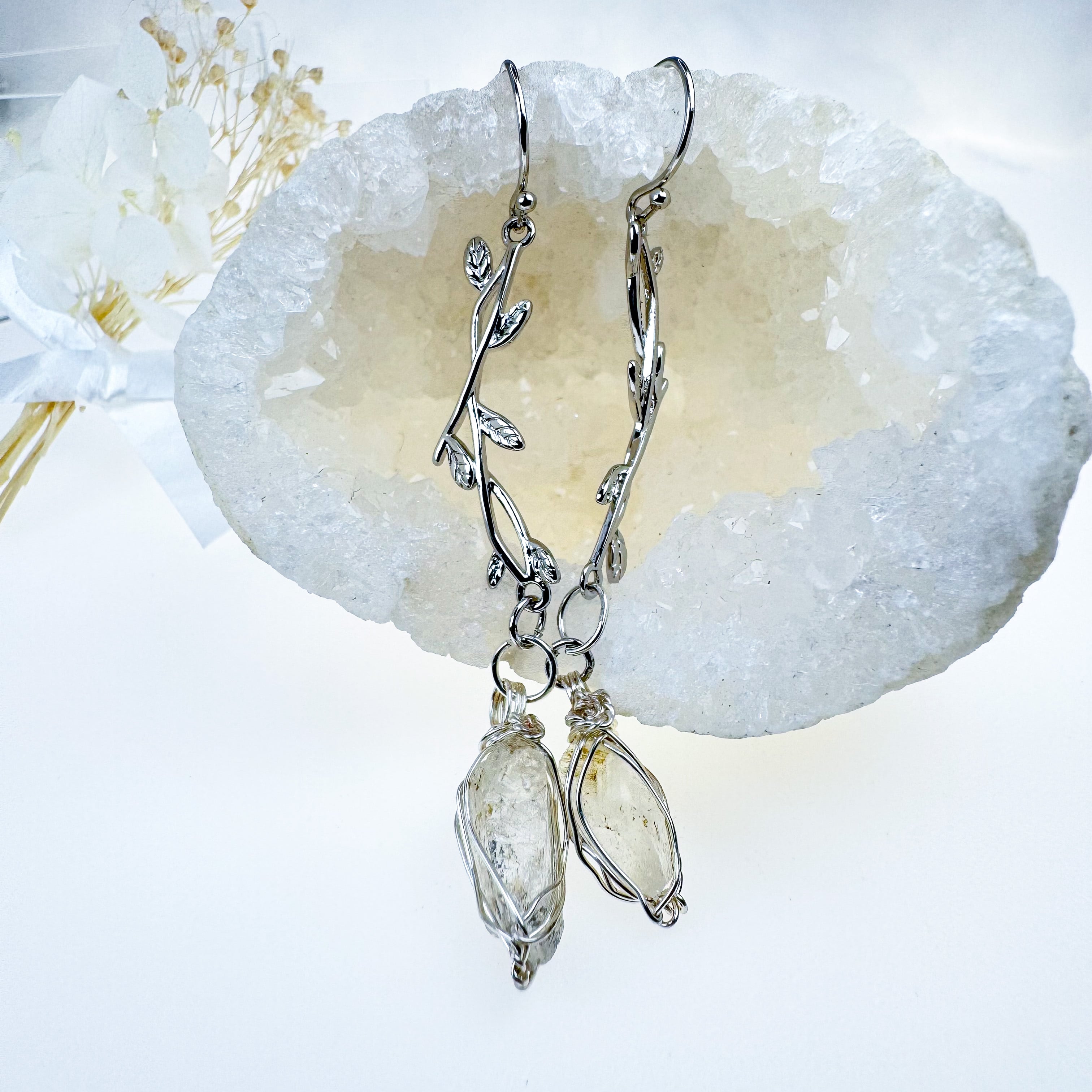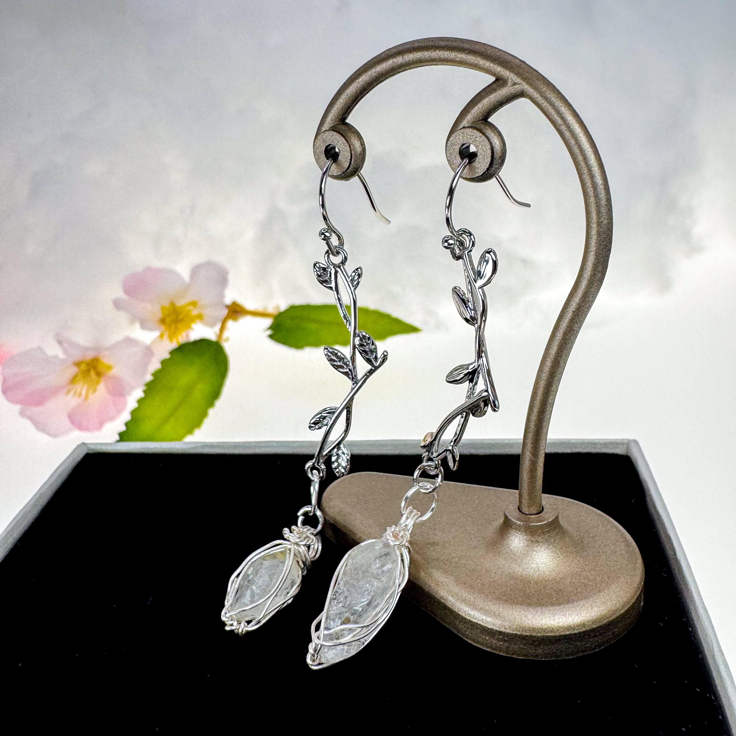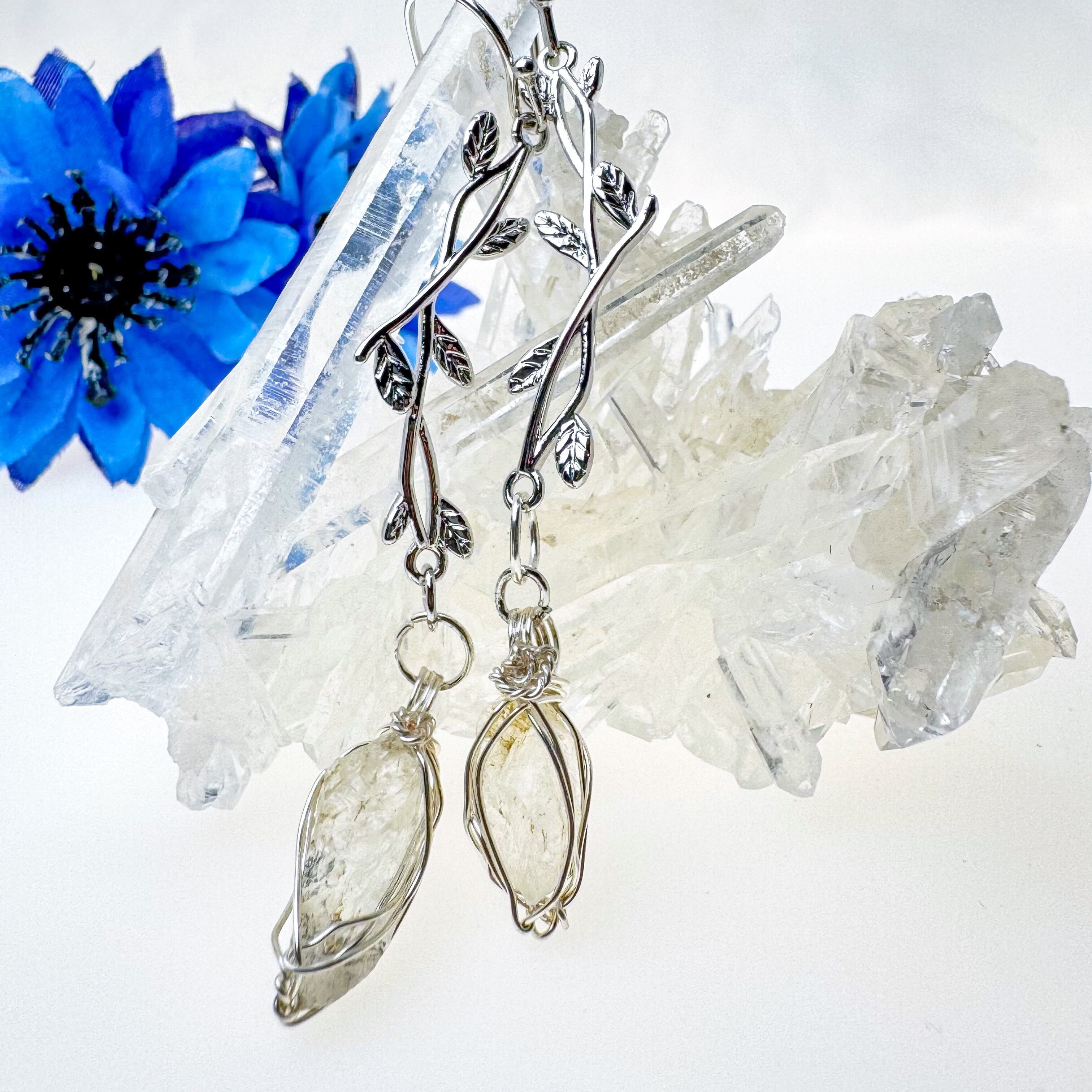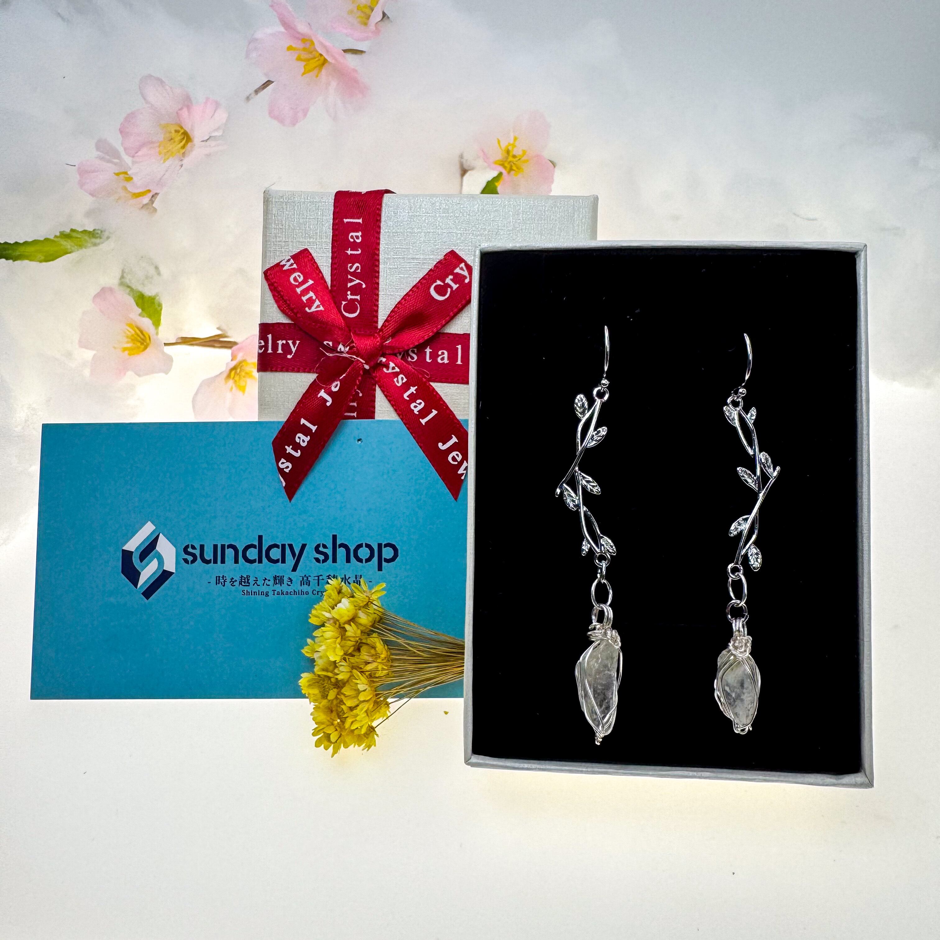 高千穂水晶のピアス【リーフ/シルバーメッキ】
