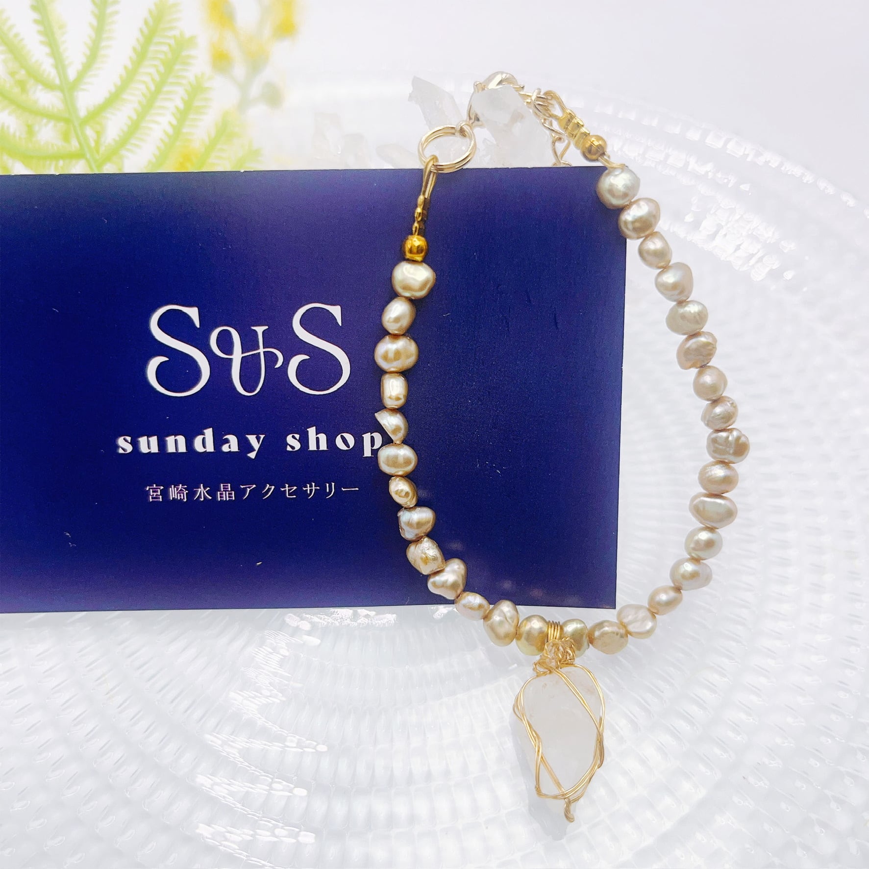 ✅高千穂水晶とパールを合わせたフォーマルなブレスレットです。